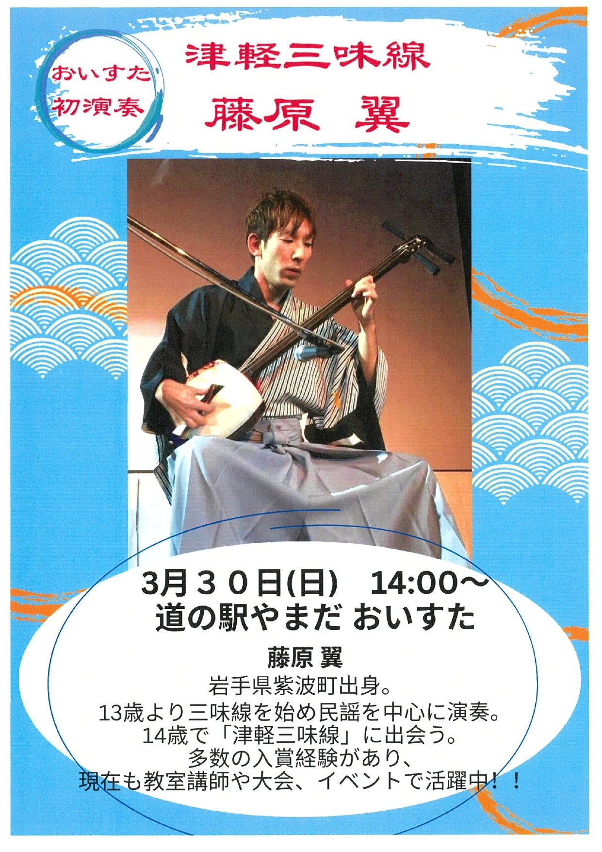 津軽三味線奏者 藤原 翼さん 演奏会を開催致します。